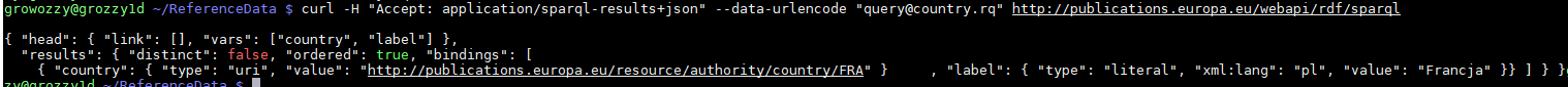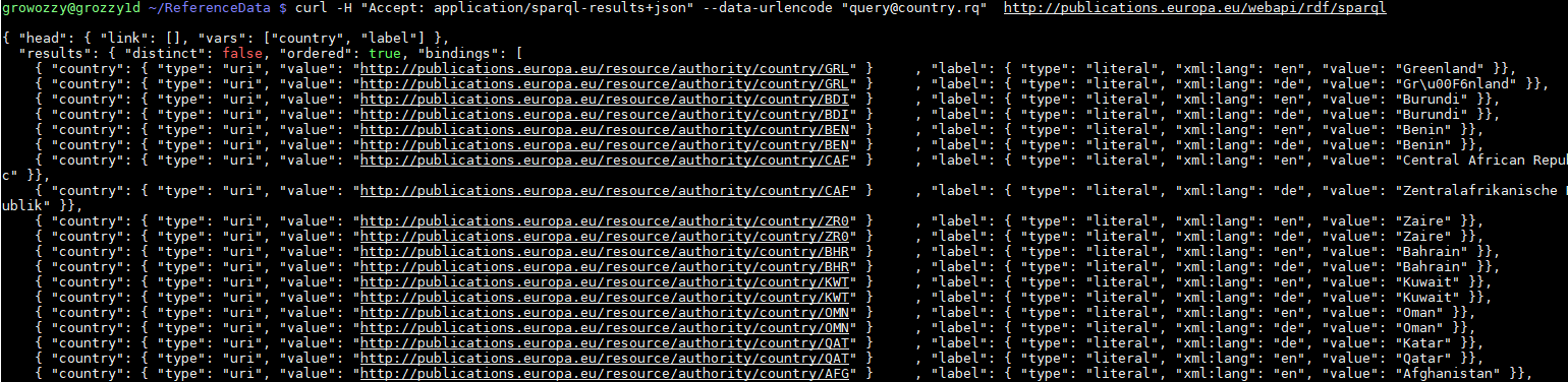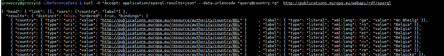 The reponse for such country.rq file is (curl command: curl -H "Accept: application/sparql-results+json" --data-urlencode "query@country.rq" http://publications.europa.eu/webapi/rdf/sparql)